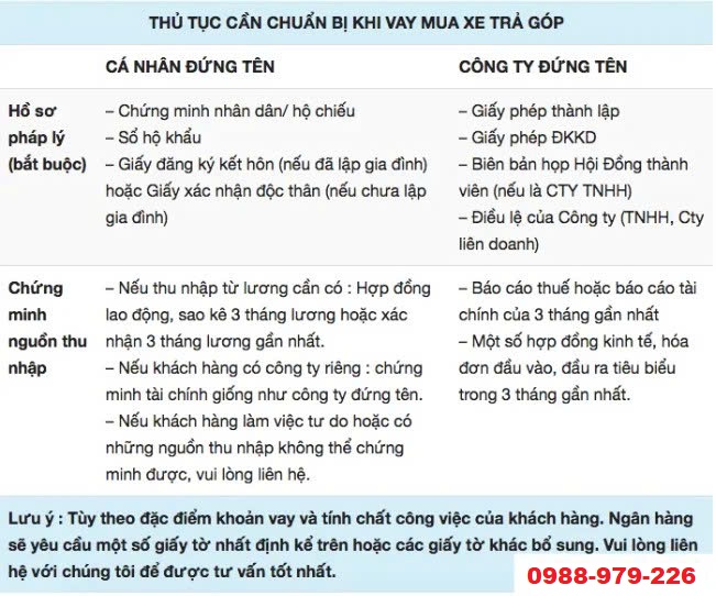 Quý khách hàng hãy gọi ngay số Hotline: 0988.979.226 để được tư vấn chi tiết về mua xe trả góp và lãi suất tốt nhất hiện nay.