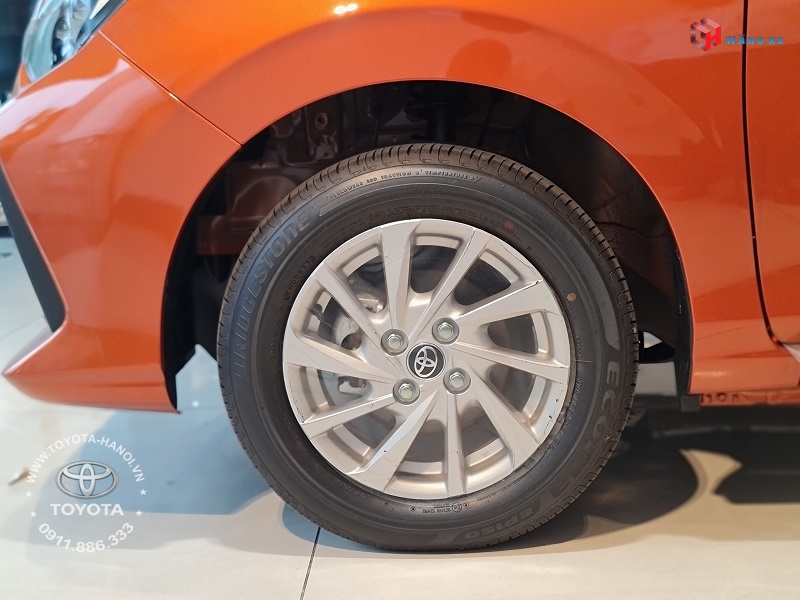 Ở phiên bản Wigo 2026 mới này, xe được trang bị bộ lazang cỡ nhỏ 14 inch đa chấu hình cánh quạt được thiết kế trẻ trung. Đi kèm là bộ lốp xe Bridgestone béo cho độ đầm chắc và giúp xe vận hành êm ái hơn.